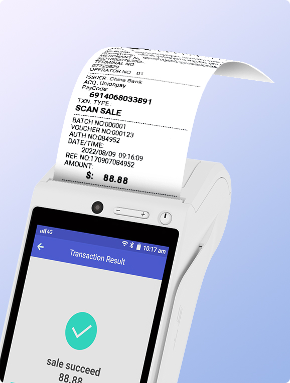 0.3MP Front camera and 5MP autofocus rear camera catch every detail of the codes, and makes payment more rapid and safer.